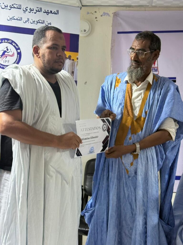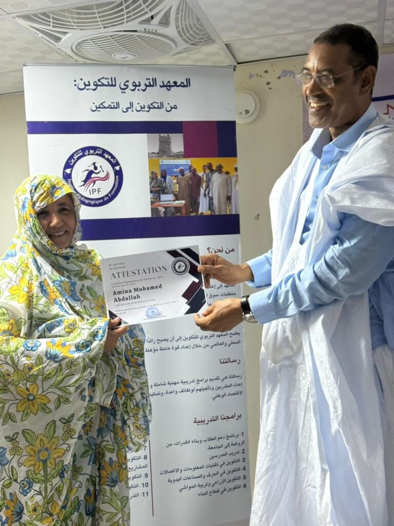 Au cours de la cérémonie, un hommage particulier a été rendu au rôle pionnier de la Région de Nouakchott dans le soutien à l’éducation et à la formation, sous la direction de Madame Fatimetou Mint Abdel Malick, Présidente de la Région, qui œuvre sans relâche pour appuyer les initiatives éducatives et développer les compétences pédagogiques.